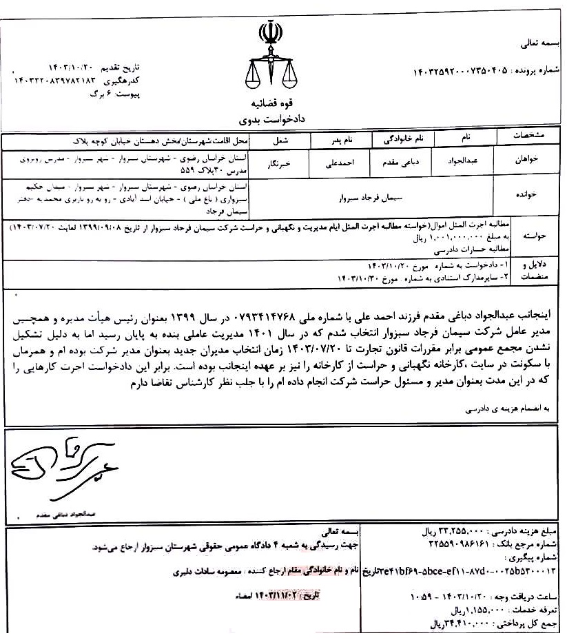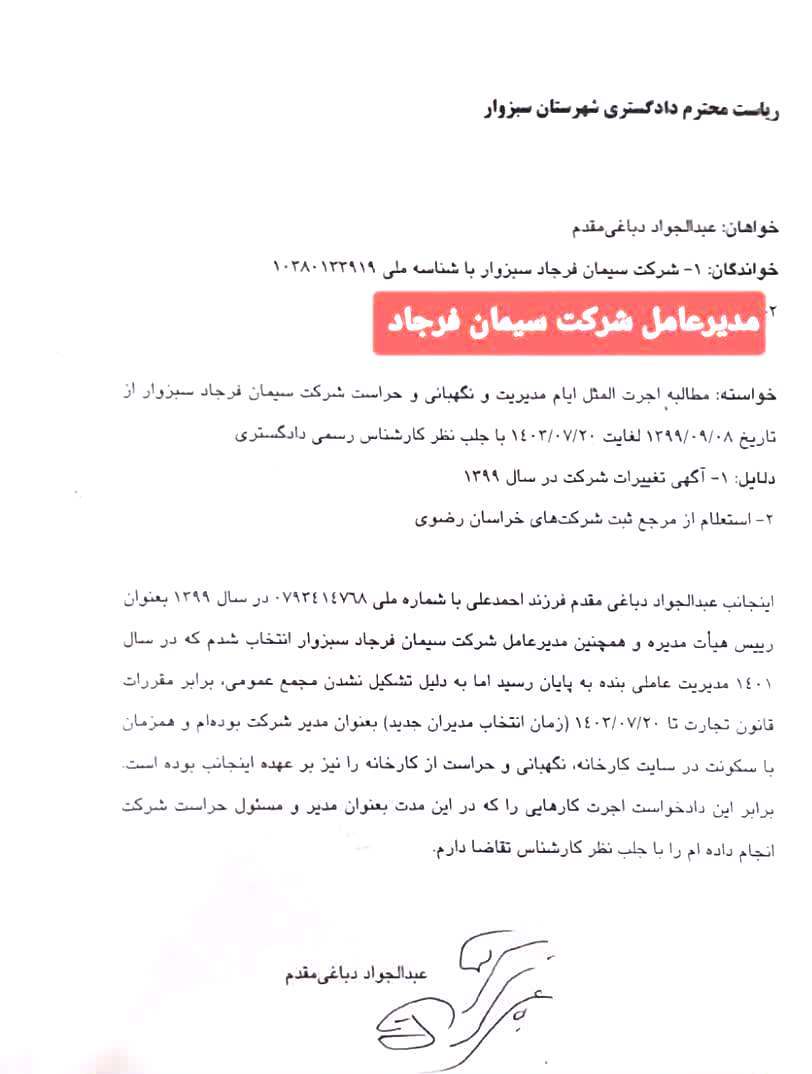 شکایت رسمی به دلیل ترک مسئولیت مدیرعامل سابق شرکت سیمان و ادعای حقوق!